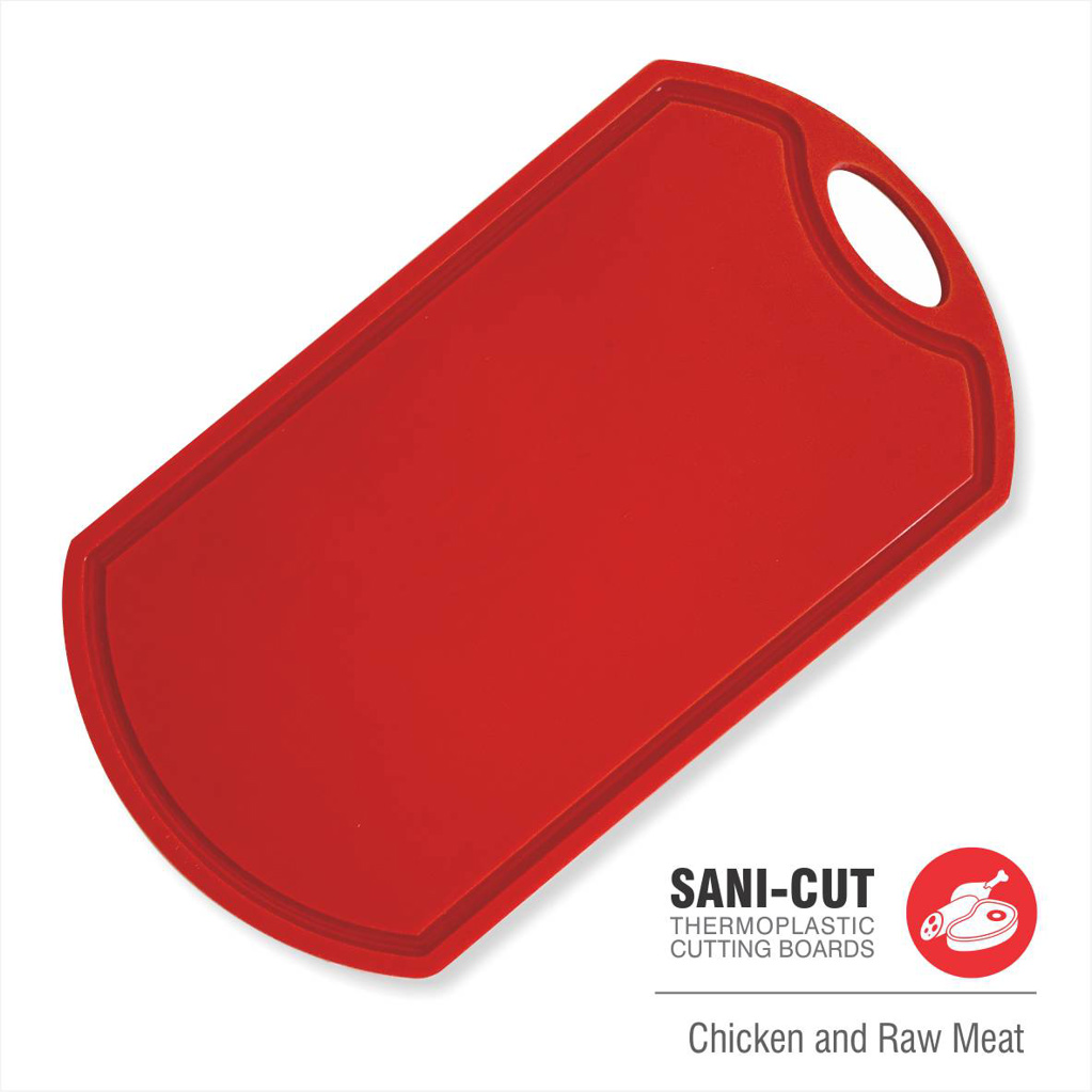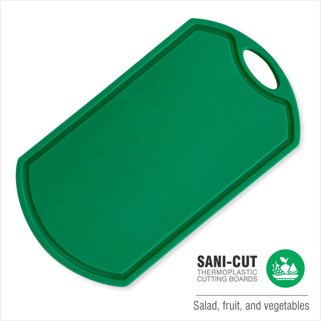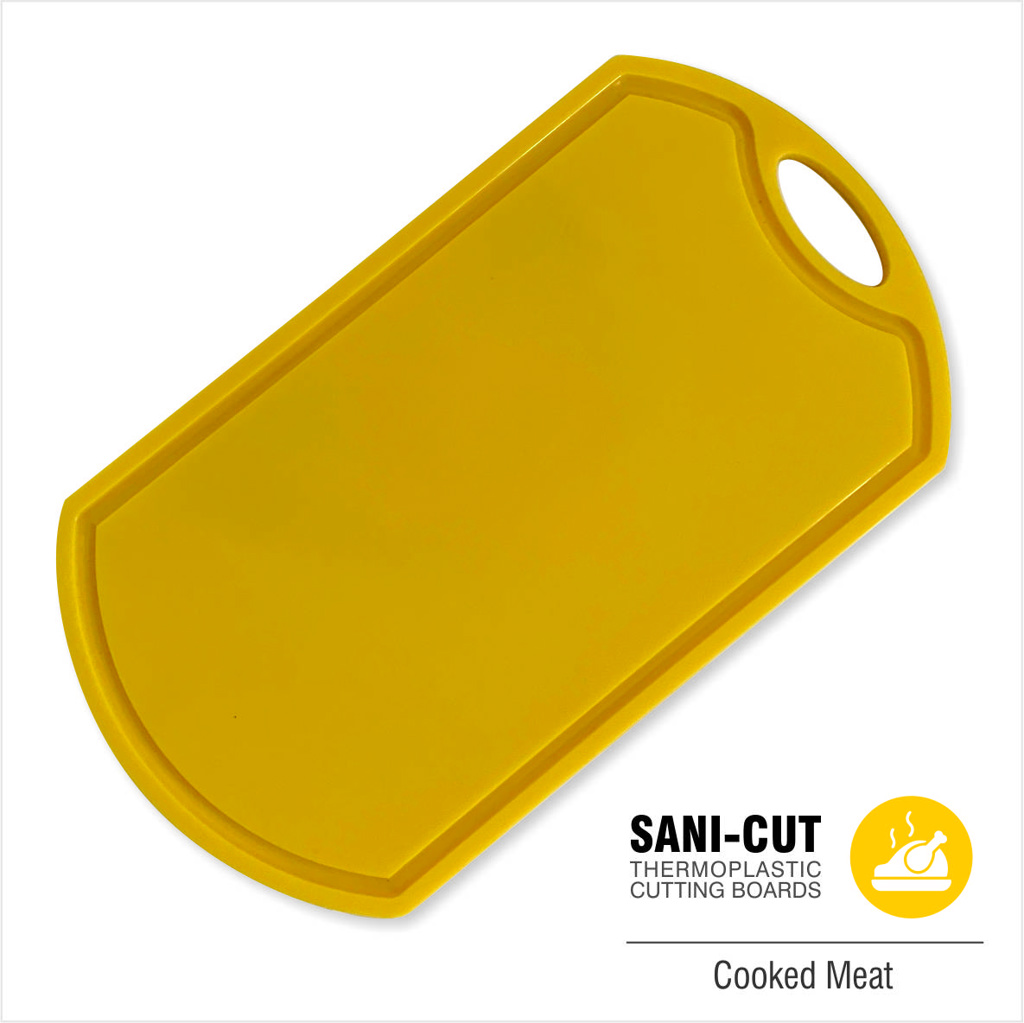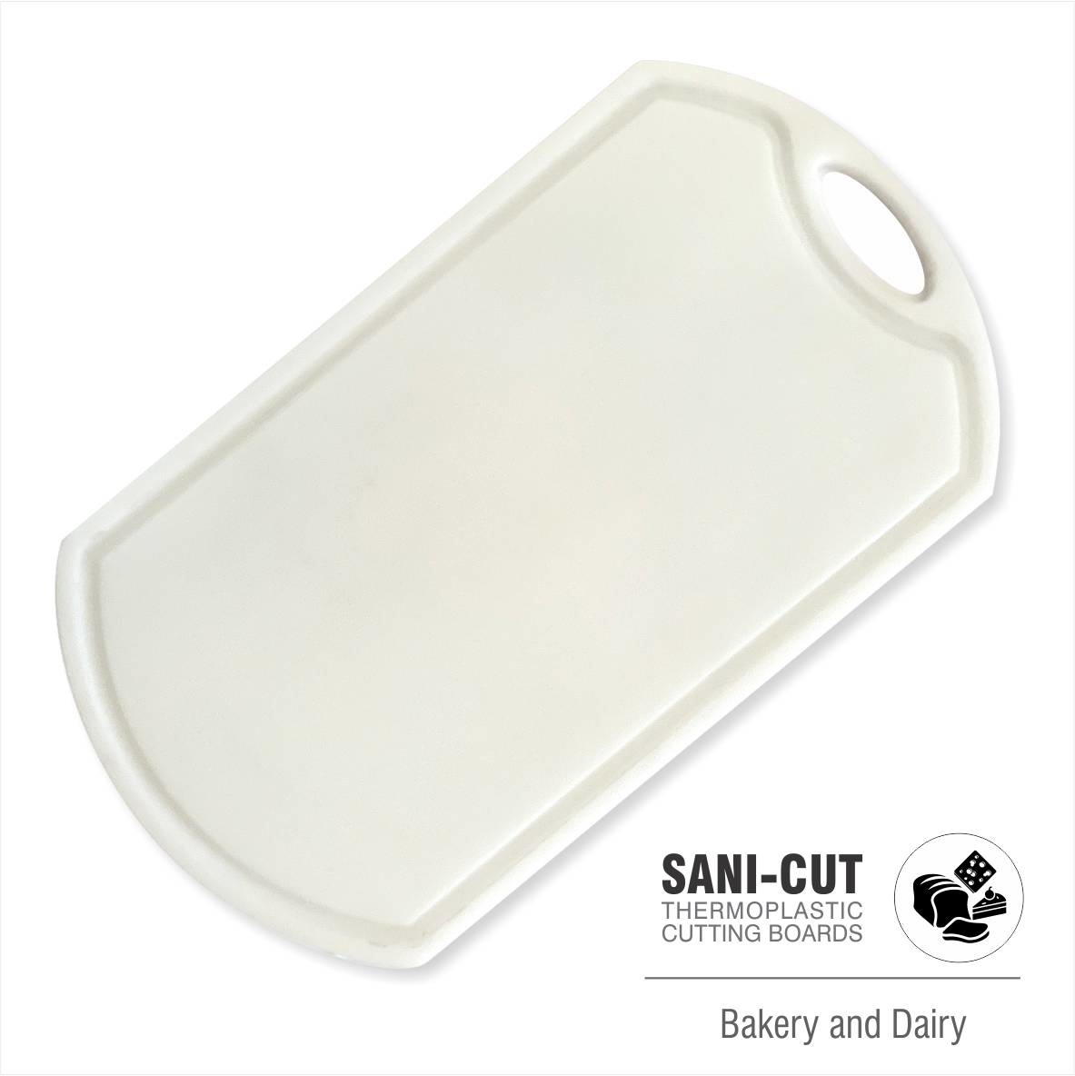 BENEFITS Lightweight. No cracking, peeling or acid corrosion. Unique self-healing qualities. Will retain its shape and not warp. Does not absorb moisture resulting in no odors being produced. Specific colours for specific applications, thus avoiding cross contamination and adhering to HACCP protocols. Easy to clean and dishwasher safe. Preserves cutting blades. Widely used in professional, industrial and retail food processing operations. SIZES AVAILABLE 470mm x 265mm (Includes hanging/carry handle, juice grooves and non-slip PU feet.)